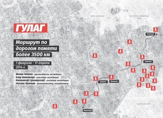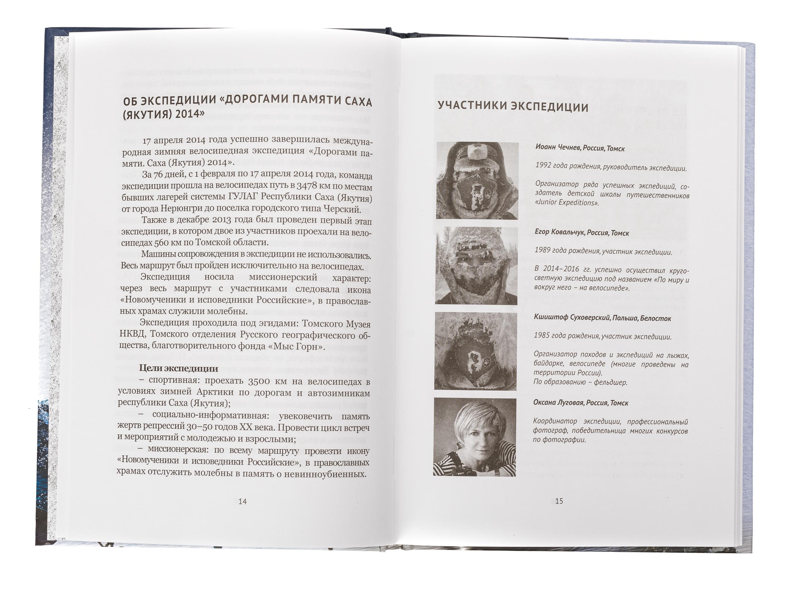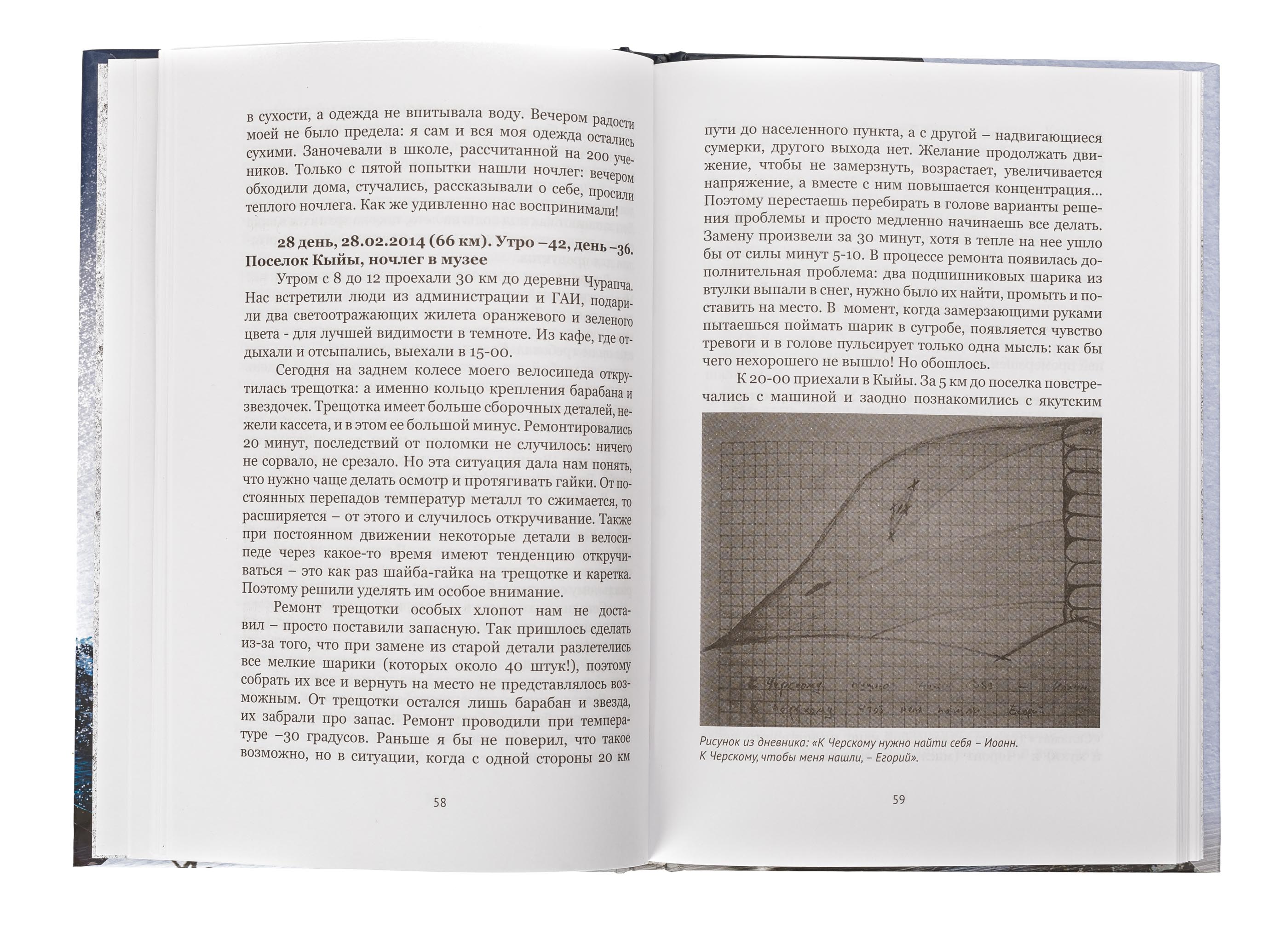 В книге отражены в виде дневника события международной велосипедной экспедиции под названием «Дорогами Памяти. Саха (Якутия) 2014». Семьдесят шесть дней, с 1 февраля по 17 апреля 2014 года, трое участников экспедиции, в том числе и автор книги, проехали на велосипедах расстояние 3478 км по дорогам и автозимникам Якутии. Температуры достигали -52С Путь пролегал по местам бывших лагерей системы ГУЛАГа от города Нерюнгри до поселка Черский.